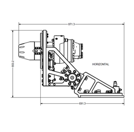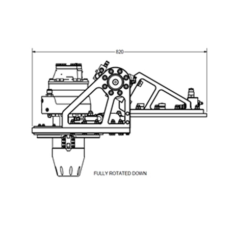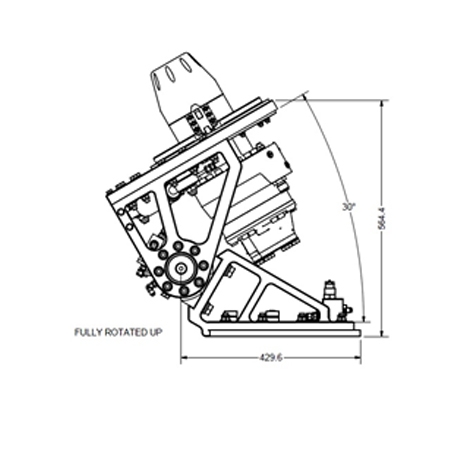 A hydraulics rotary actuator and a double acting cylinder control the pitching and rotation movement respectively.
